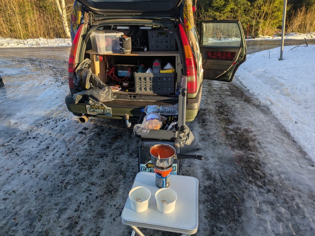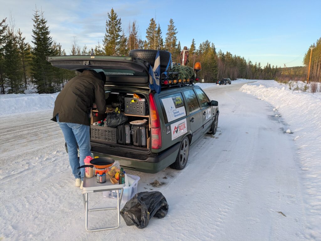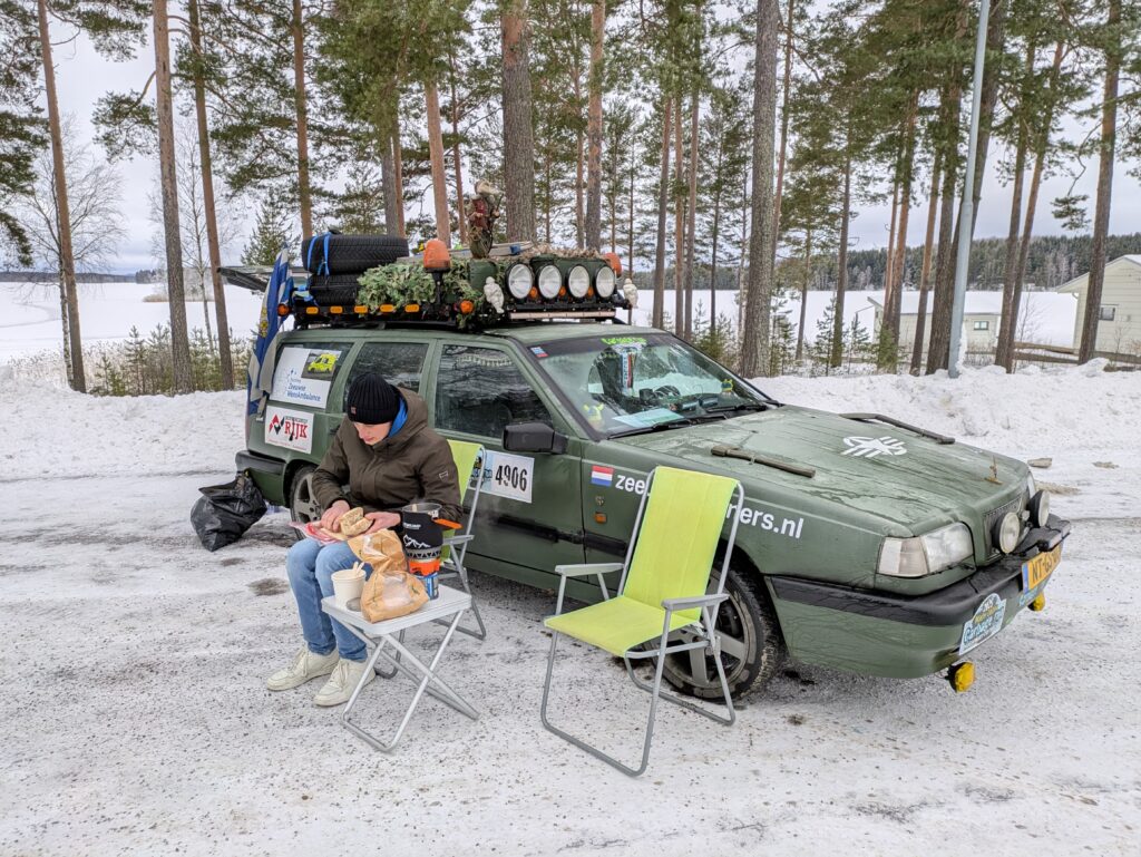 In de zomer van 2024 hebben we over de loop van 6 maanden de auto volledig opgebouwd. Veel lampjes, toeters, bedrading, accessoires voor op het dak en de lak opgeschuurd en legergroen gerold. Met zoveel kilometers voor de boeg leek het ons een leuk idee om er meteen een sponsorloop van te maken. We hebben toen een GoFundMe actie opgezet, eenmaal bij de finishstreep aangekomen te zijn in Helsinki stond de teller op €2500. Een erg mooi bedrag waar we trots op zijn.