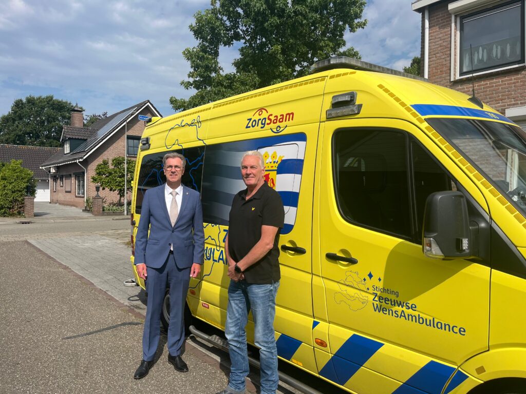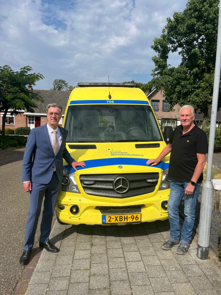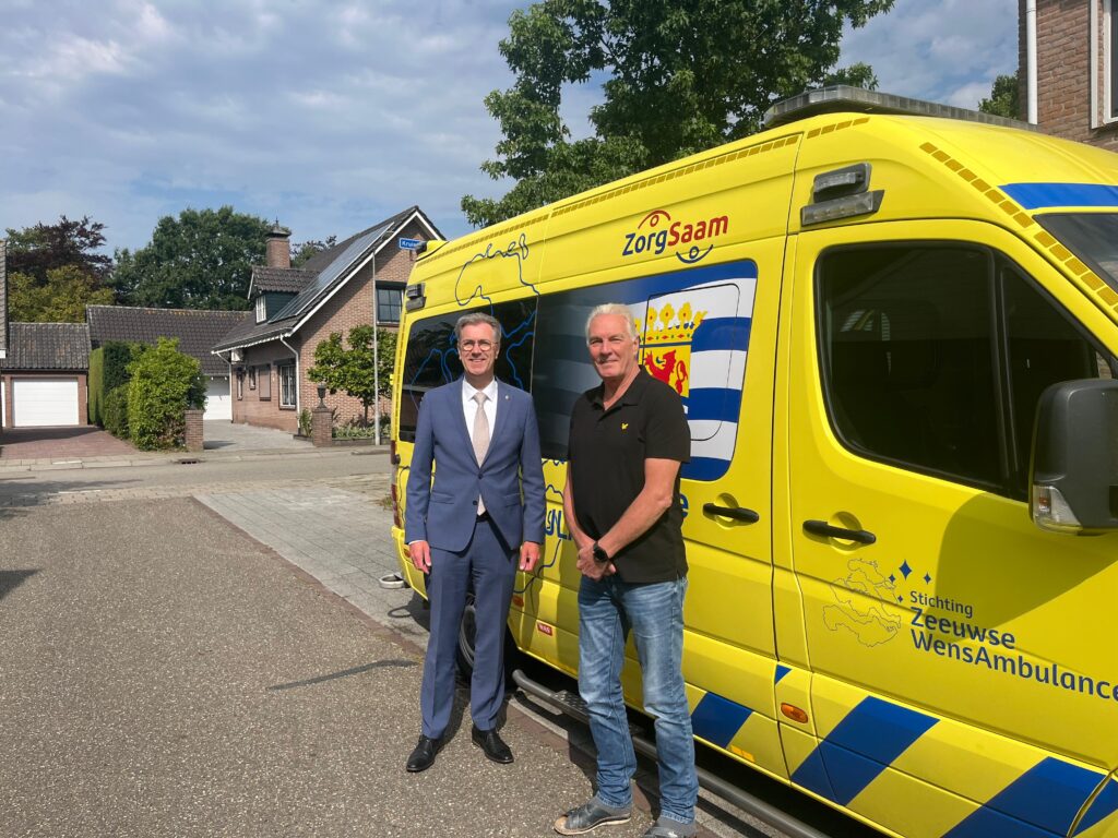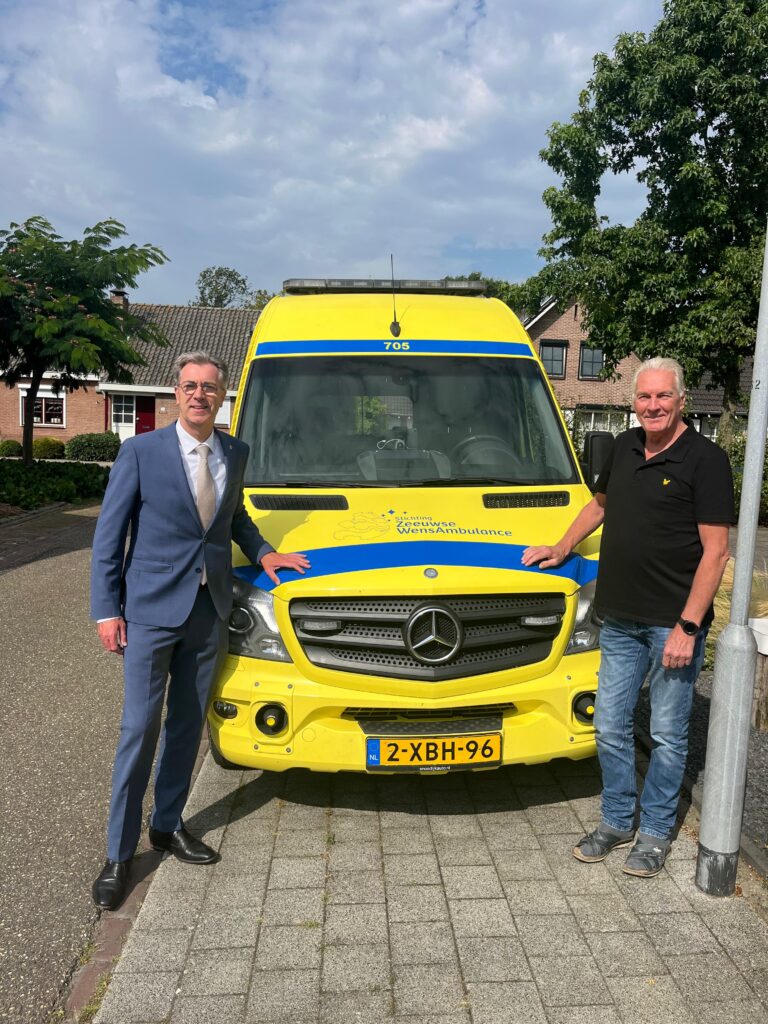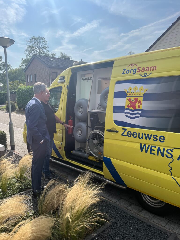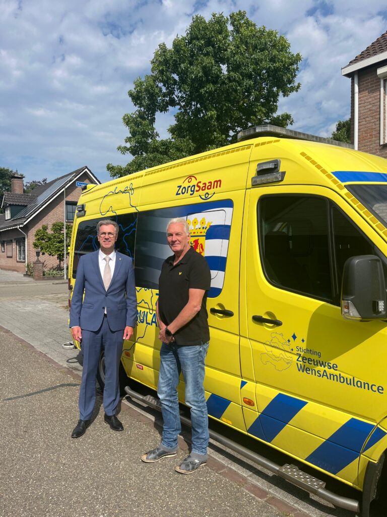 Hoog bezoek bij de Zeeuwse WensAmbulance van de provincie Zeeland. We hadden de vraag gekregen of ze bij ons op werkbezoek mochten komen eigenlijk niet wetende wat de bedoeling hiervan was. Na de mailwisseling die hier op volgde kwam het erop neer dat ze een kijkje wilde nemen in de keuken van de Zeeuwse WensAmbulance. Vandaag was het dus zover en rond de klok van 10:00 uur arriveerde de gedeputeerde voor het bezoek. Onder het genot van een bakje koffie hebben we een goed gesprek gehad en zijn we daarna naar de ambulance gegaan om deze te bezichtigen. Al met al vindt hij het een prachtig initiatief waar hij volledig achter staat en waar de provincie blij mee is en waar ze ook hun waardering over uitspreken.